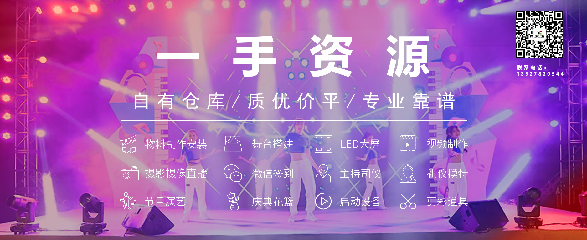 廣州贏彩廣告有限公司是一家集燈光音響,led大屏幕,直播錄播等活動av設(shè)備租賃及技術(shù)支持以及舞臺結(jié)構(gòu)搭建和物料制作的公司。在客戶中擁有良好的口碑,與國內(nèi)各文藝團(tuán)體保持良好的合作關(guān)系。本公司成功舉辦了眾多大型年會,商業(yè)發(fā)布會,網(wǎng)紅直播會,醫(yī)學(xué)直播大會,電影發(fā)布會,派對,大型會議,t臺秀,音樂節(jié),開業(yè)慶典、剪彩、揭幕、揭牌、奠基儀式、大型演出等。及樓宇開盤、頒獎儀式、周年慶典晚會、簽約儀式、新聞發(fā)布會...